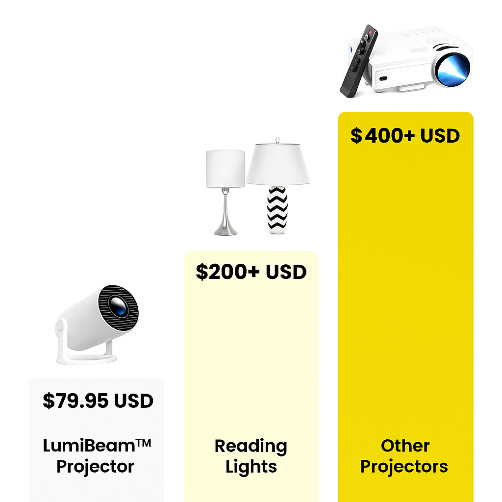 “I read fantasy and romance books for hours every night, so I wanted something that actually matched the mood. The LumiBeam Projector completely changed the vibe of my space, it makes me feel like I’m inside the story, not just reading it. Regular projectors don’t even come close.”